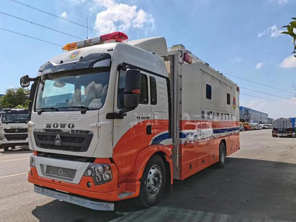 | 整车说明: | 1.采用轴距:5600mm,5800mm;总长(mm)=前悬+轴距+后悬(mm)对应关系为:10500=1430+5800+3270.10300=1430+5600+3270.2.整备质量为13800kg,对应额定载质量4070kg和 4005kg;整备质量为13200kg,对应额定载质量4670kg和4605kg.3.该车主要装置为集成灶台、蒸饭柜、车厢,用于野外烹饪食品,餐饮加工.4.后防护采用Q235,焊接连接,后防护截面尺寸:120mm×100mm,下边缘离地高400mm,裙边结构代替侧防护.5.选装侧面窗户排列形式及侧翻板门,选装厢体.6.ABS系统控制器生产企业/型号为威伯科(上海)管理有限公司/4460046300;选装EBS,EBS系统控制器生产企业/型号为威伯科(上海)管理有限公司/EBS3.7.选装驾驶室和外观,选装爬梯样式和内饰. | ||