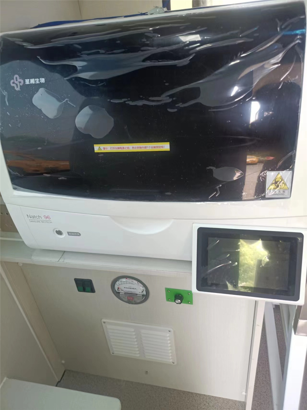 研发的新产品,具有良好的移动性,可突破疆域限制,实现就地采集样品和样品检测,是“行走的核酸检测实验室”。它可即用即停,满足移动与落地作业,实现平战结合;环境适应性强,动力性能好,且对场地无要求,偏边远地区及极端天气均可使用。 移动式核酸取样检测车,可高效采集样品,检测通量可达 3000 管/天。