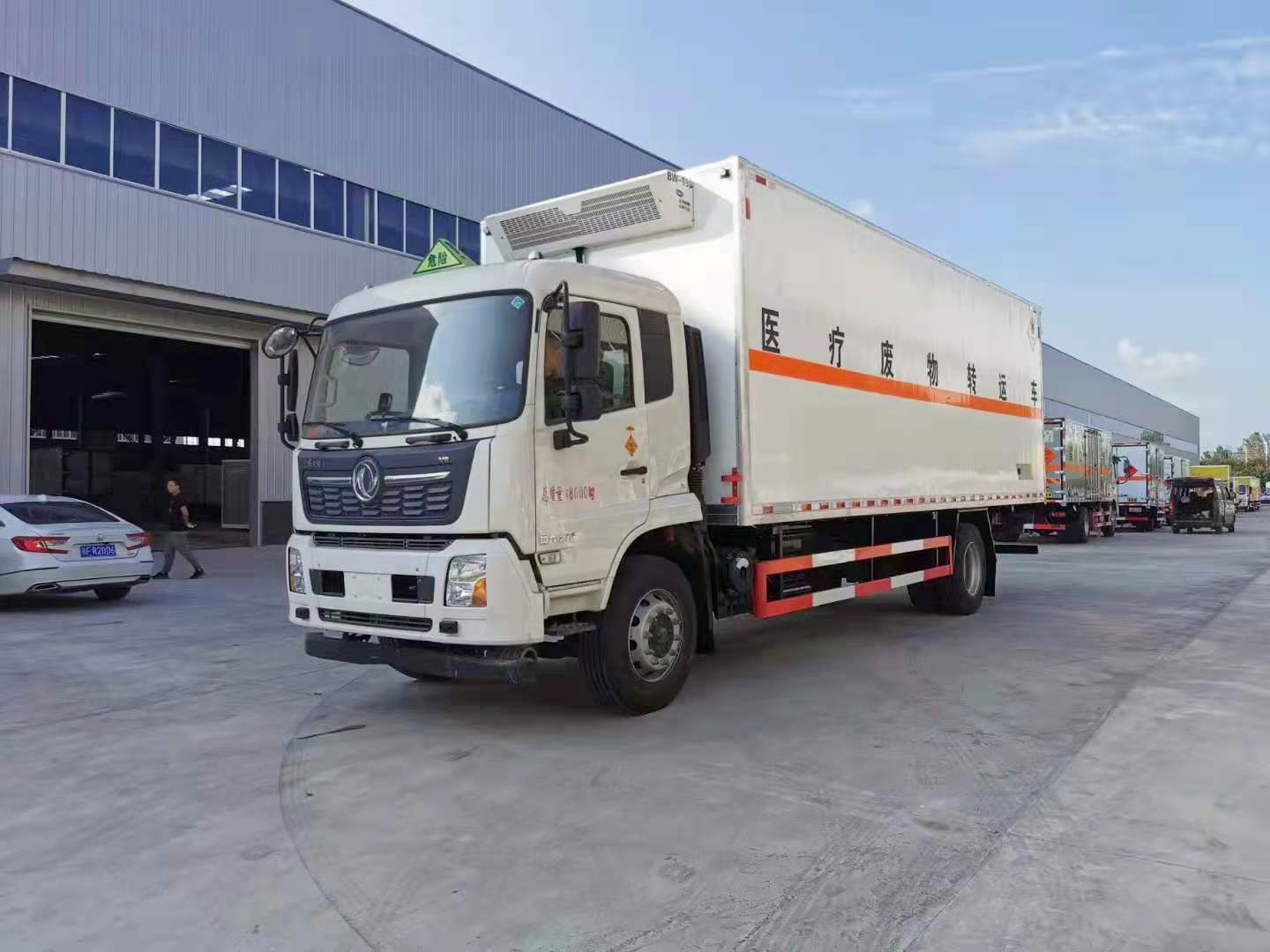 | 整车说明: | 该车为危险品运输车.该车顶部封闭,不可开启.随底盘选装驾驶室.类项号:6.2.后部安装液压尾板,液压尾板收起水平长度:300mm,尾板质量为550kg.侧、后防护材料为Q235,连接方式:焊接连接,后防护截面高120mm,截面宽50mm,下边缘离地高490mm.选装后部不带尾板时,后防护装置材料:Q235,连接方式为焊接,后防护截面高120mm,截面宽50mm,下边缘离地高490mm.选装侧开门型式及位置;选装后部样式,选装制冷量相同的制冷机组.仅采用排气管前置,子午胎,限速装置,辅助制动装置和前盘制动器的底盘;限速80km/h.安装具有卫星定位功能的行驶记录仪.EBS型号/生产厂家:EBS5/东科克诺尔商用车制动系统(十堰)有限公司.发动机B6.2NS6B210对应的油耗值为26.5L/100km,发动机DDi50E190-60对应的油耗值为23.9L/100km.后轴仅采用空气悬架.转向轴已安装防爆胎装置.选装ETC车载装置.发动机B6.2NS6B210的最大净功率为151kw.发动机DDi50E190-60的最大净功率为143kw. | ||