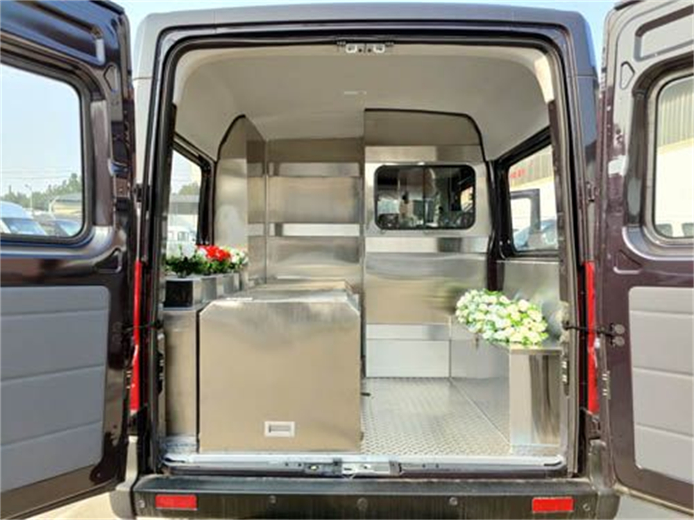1、采用304D不锈钢加厚材料制作中隔墙(带可滑玻璃窗),方便随时观察后仓 2、有不锈钢工具箱,可放置随车用品 3、前后包铺304D不锈钢花纹底板 4、选配304D不锈钢常温尸棺及担架一副或304D车载制冷棺 5、可根据不同需求进行改装 |