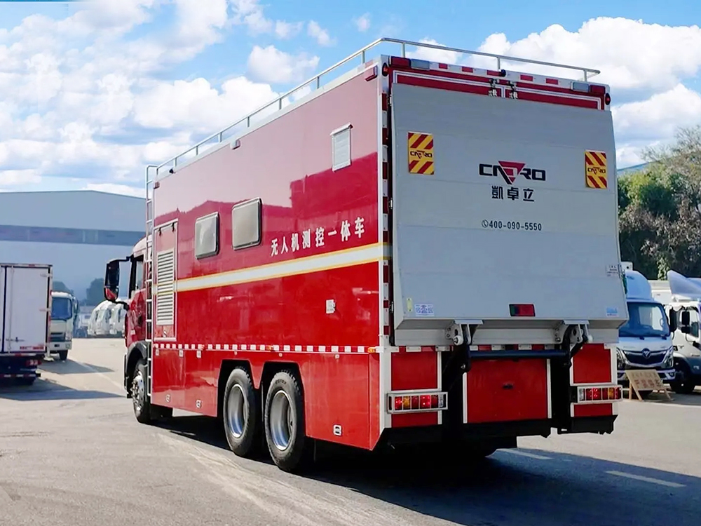 | 整车说明: | 该车主要专用装置为:无人直升机,车载云台摄像机,液晶电视,主要用于现场指挥.侧面防护为裙板结构,后部防护装置材质为Q235B碳钢,连接方式:焊接连接,断面尺寸(mm):120×60,离地高度(mm):480.选装限速装置时,最高车速(km/h)为80或89.ABS系统控制器生产企业/型号为威伯科(上海)管理有限公司/4460046300,选装EBS,EBS系统控制器生产企业/型号为威伯科(上海)管理有限公司/EBS3.整车长/前悬/轴距/后悬对应关系(mm):9700/1430(1500)/4600+1350/2320(2250),9600/1430(1500)/4600+1350/2220(2150),9400/1430(1500)/4275+1400/2295(2225),9300/1430(1500)/4275+1400/2195(2125),9400/1430(1500)/4300+1350/2320(2250),9300/1430(1500)/4300+1350/2220(2150).该车配备液压尾板,液压尾板质量为450kg,液压尾板收起时水平长度为200mm.仅选用钢板弹簧悬架的底盘.仅选用295/80R22.5,12R22.5,12.00R20 16PR,11.00R20型号轮胎.选装转台天线,选装静中通卫星天线,选装倒伏升降云台摄像机. | ||