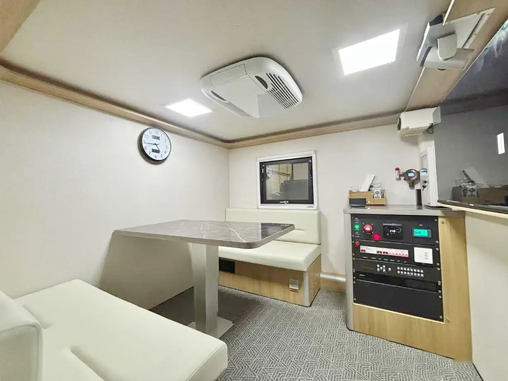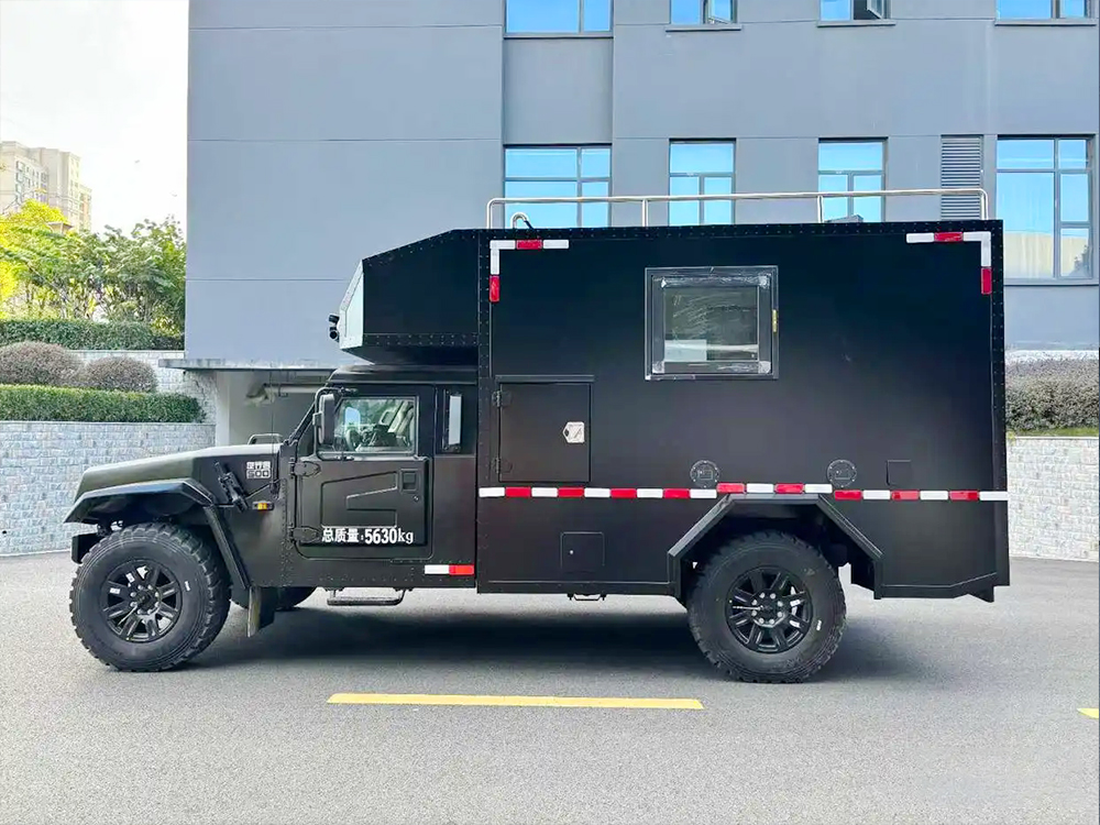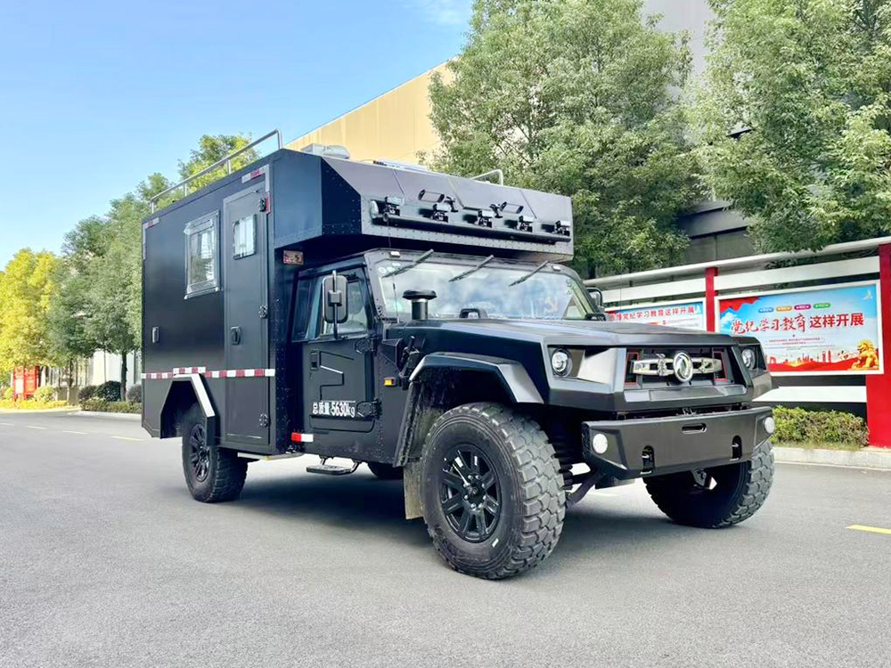猛士国六越野式指挥车整个内饰采用的是黑色布局,大气稳重充满气场。搭配四位方向盘,凸显了新车的运动属性。定制的是大尺寸中控屏密集覆盖物理按键。科技感与越野风相结合。搭载4.0T柴油发动机,采用的是防脱轮毂,离地间隙非常高,新车的门把手采用的是黑色装饰。箱体内部加装了指挥机器,会议桌灯设施,根据要求进行定制。箱体材料便捷防刮耐磨。原车版型量身定制,使用寿命更长。