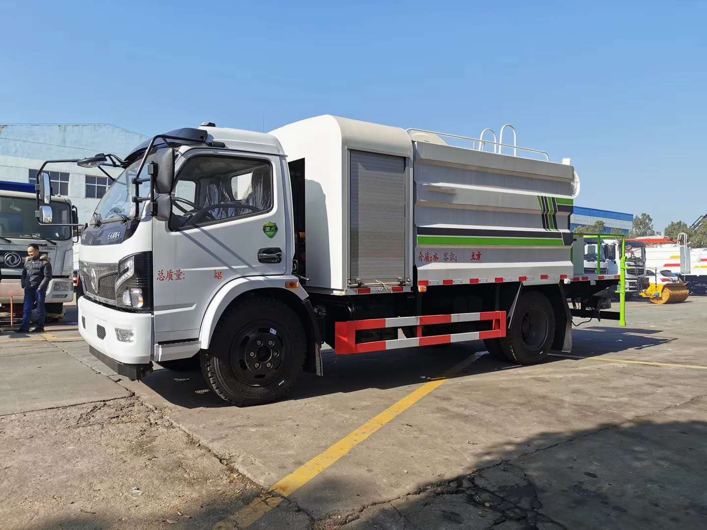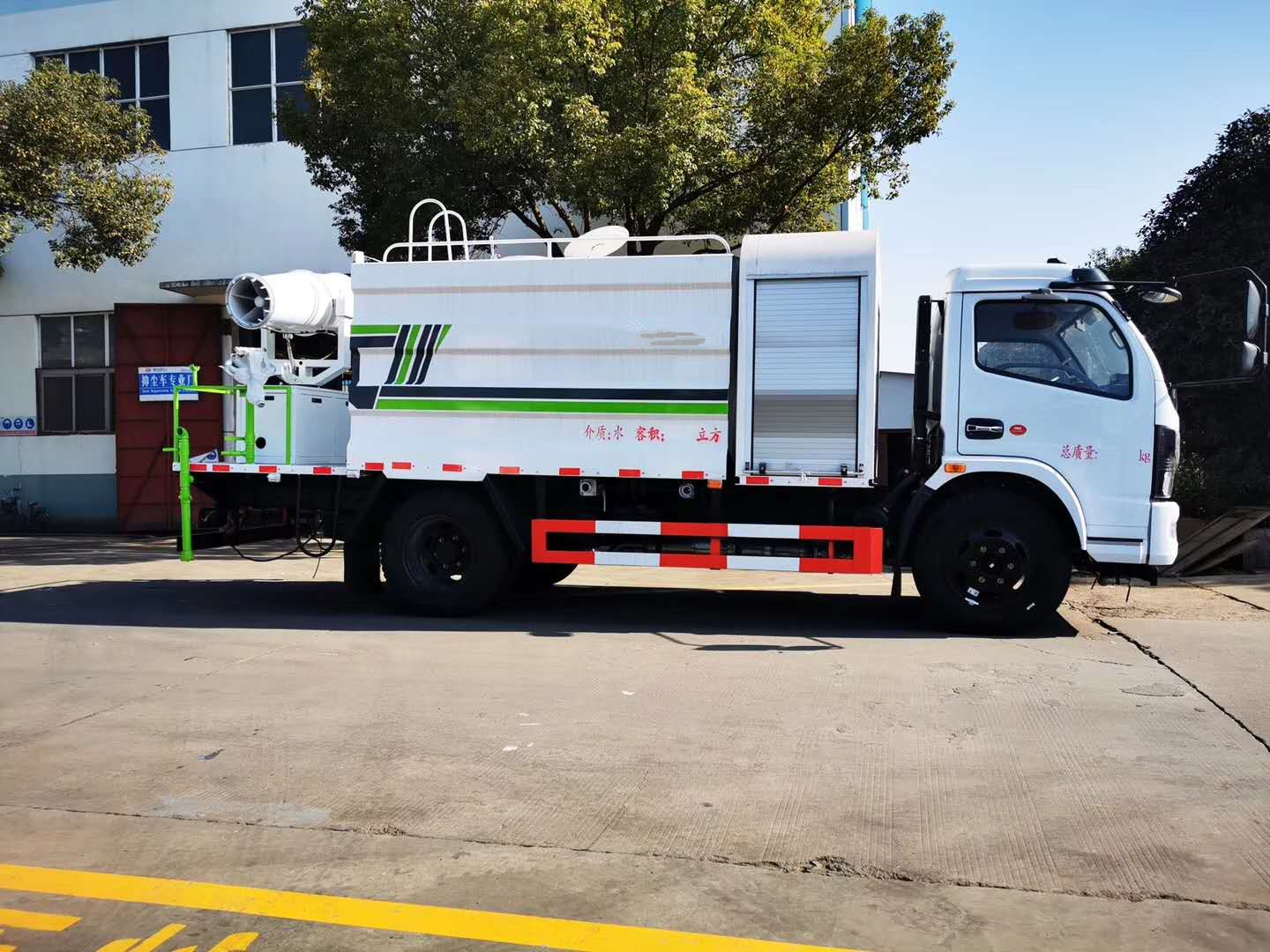 | 整车说明: | 随底盘选装前面罩,前保险杠,前组合灯具,前雾灯。侧防护采用Q235,螺栓连接。后防护采用Q235,焊接连接。后防护截面高度尺寸120mm,截面宽度尺寸50mm,下边缘离地高度375mm。采用3800轴距底盘.ABS型号/厂家:ABS型号:ABS/ASR-24V-4S/4M,厂家:襄阳东风隆诚机械有限责任公司。该车用途为抑尘降霾,主要装置为水罐及喷雾装置。选装后平台样式,外观样式,左右出水口及附件位置。 | ||