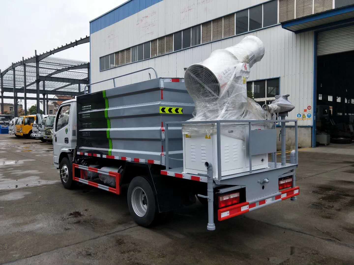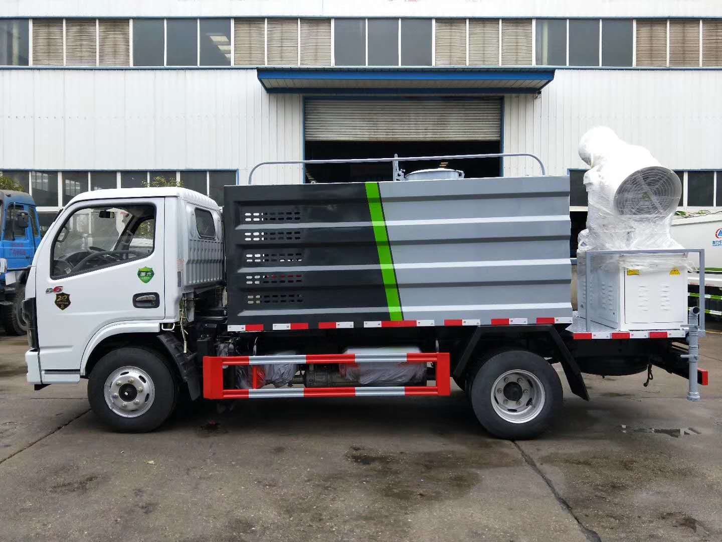 | 整车说明: | 随底盘选装驾驶室;选装水箱外包围;选装后部水炮结构样式。侧防护采用冷弯型钢/Q235-B,螺栓连接,后防护采用Q235-B,螺栓连接,后防护截面高度尺寸120mm, 截面宽度尺寸50mm,下边缘离地高度480mm。ABS型号/厂家:ABS/ASR-12V-4S/4M/襄阳东风隆诚机械有限责任公司。该车主要用于城市街道的喷雾抑尘,主要专用装置为喷雾总成。 | ||