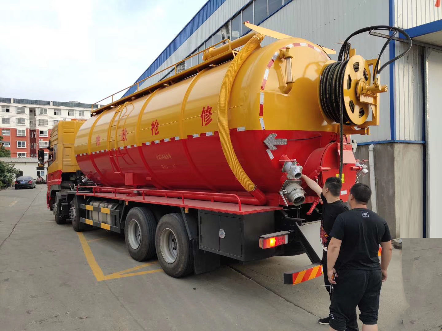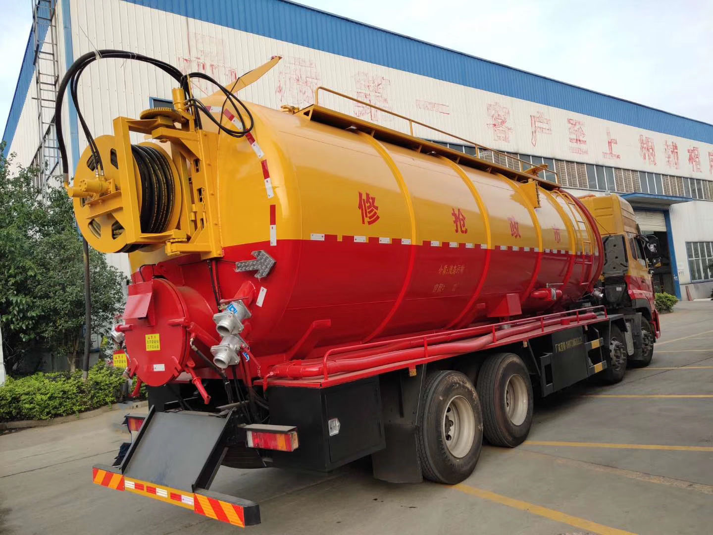 | 整车说明: | 1.该车装备有清水罐,污水罐,高压水泵和水循环吸污泵等装置,用于清洗和吸污;2.罐体外形尺寸(直段长×直径)(mm):7200×2350(其中罐体前部为清水罐),两罐独立,且不能同时满载,清洗功能时用清水罐,吸污功能时用污水罐;3.污水罐介质:液态污物,密度:800千克/立方米,有效容积15.63立方米,外形尺寸(直段长×直径)(mm):4000×2350;清水罐介质:水,密度:1000千克/立方米,有效容积12.37立方米,罐体外形尺寸(直段长×直径)(mm):3200×2350;4.仅采用:1995+4600+1350;5.侧/后防护材料为Q235,侧/后防护连接方式均为焊接连接,后防护截面尺寸(mm)260×50,下边缘离地高450mm;6.随底盘选装驾驶室;7.ABS生产厂家:东科克诺尔商用车制动系统(十堰)有限公司,型号:3631010-C2000。 | ||