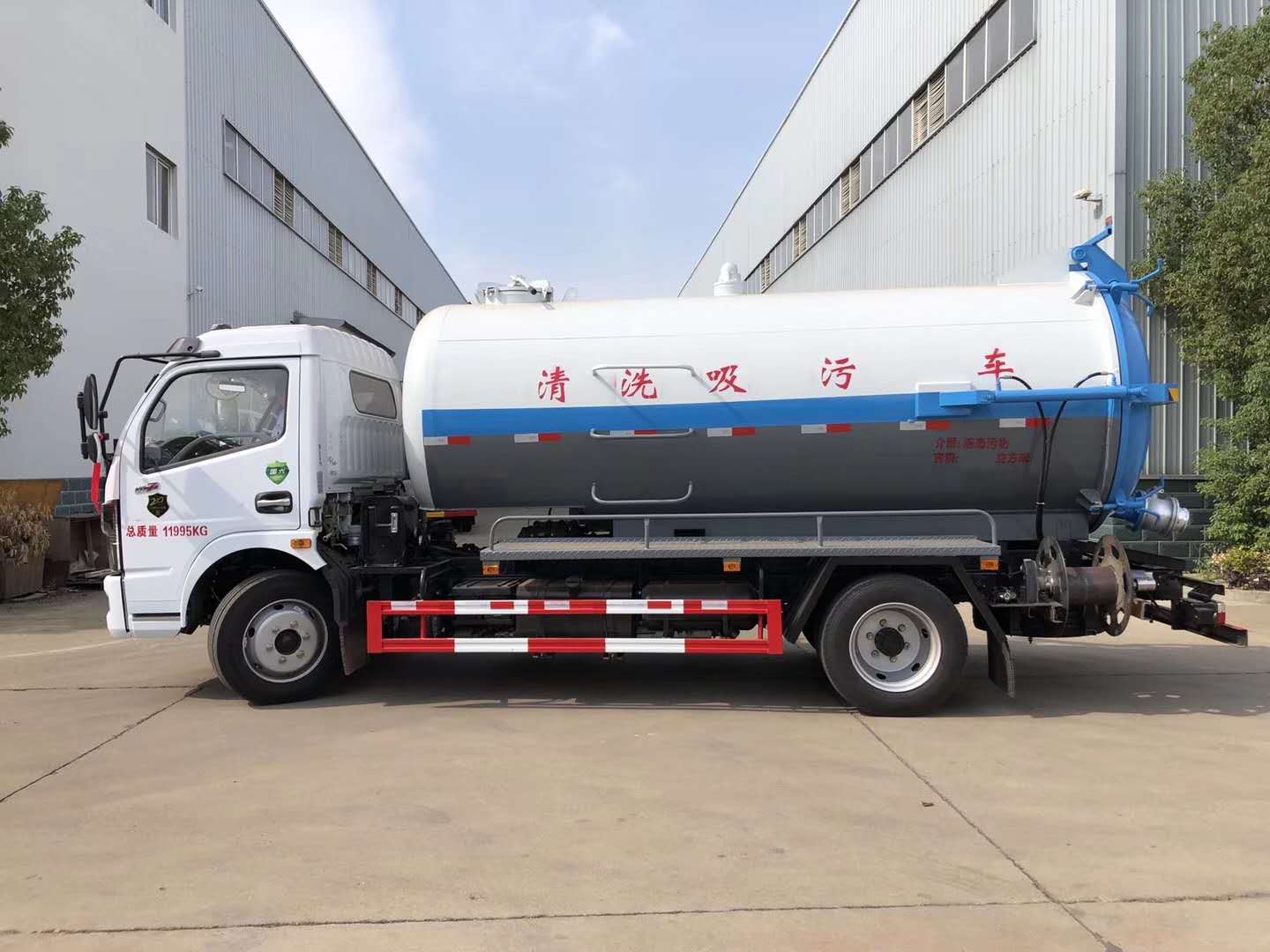 | 整车说明: | 该车主要用于城市各种输送管道(堵塞物)疏通工作;主要装置为罐体.罐体外形尺寸(长(含封头)×直径)(mm):4900×1600(其中罐体前部2100mm为清水罐),污水罐罐体有效容积5.1立方米,运输介质:液态污物;清水罐罐体有效容积3.7立方米,运输介质:水.清洗和吸污功能不同时使用,两罐不能同时装载.车辆长/前悬/后悬的对应关系为:7380/1130/2450,7380/1180/2400,6900/1130/1970,6900/1180/1920.仅采用3800mm轴距.侧、后防护装置材料材质均为Q235;连接方式:左右侧面及后下部防护均采用焊接连接,后部防护装置断面尺寸(宽×高)50×180(mm),后部防护离地高度:400mm.随底盘选装驾驶室,选装罐体后部卷盘.ABS型号/厂家:ABS型号:ABS/ASR-24V-4S/4M,厂家:襄阳东风隆诚机械有限责任公司. | ||