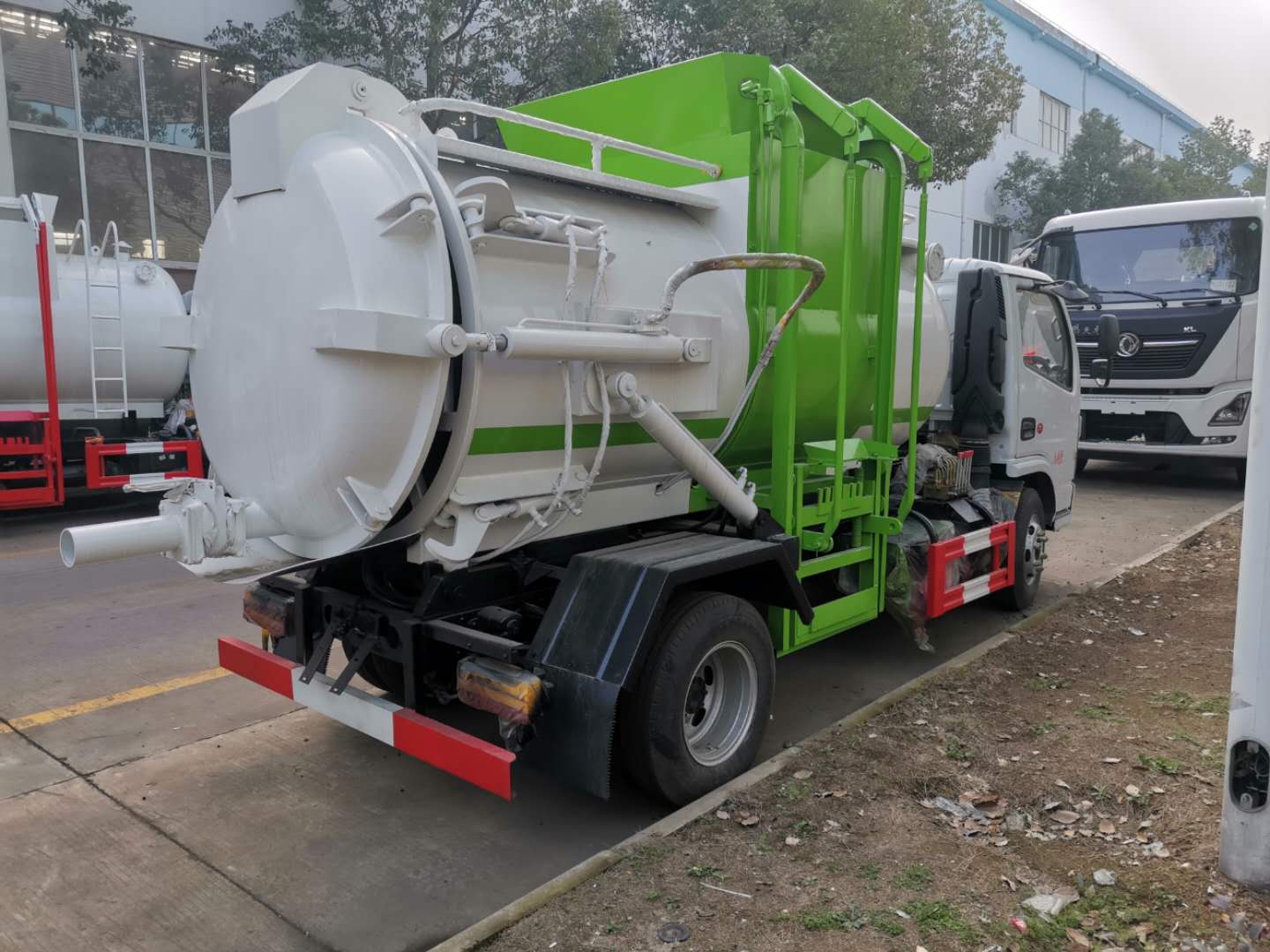 | 整车说明: | 1、仅选用3308mm轴距底盘改装。2、该车可选装内部推板、加热装置,不影响整车外观,但会引起整车重量变化,该车可选装A:内部推板装置B:内部加热装置C:真空吸污装置,当无选装装置时:整备质量/额定载质量对应关系为(kg):4370/2860;当选装A、B、C装置中任意一项配置时,整备质量/额定载质量对应关系为(kg):4800/2430;当选装A、B、C装置中任意两项配置组合时,整备质量/额定载质量对应关系为(kg):5100/2130;当A、B、C装置全部选装时,整备质量/额定载质量对应关系为(kg):5250/1980。3、防护材料:Q235B碳钢,连接方式:左右侧面及后下部防护均采用焊接连接,后下部防护断面尺寸(mm):120×50,后下部防护离地高度(mm):380。4、ABS型号/厂家:ABS/ASR-12V-4S/4M/襄阳东风隆诚机械有限责任公司。5、专用装置:侧装垃圾桶提升装置,主要用于餐厨垃圾收集及转运。6、随底盘选装驾驶室,选装底盘附件安装位置。该车可选装爬梯,可选装带真空吸污装置上装外观,提升机外观,视窗后置。 | ||