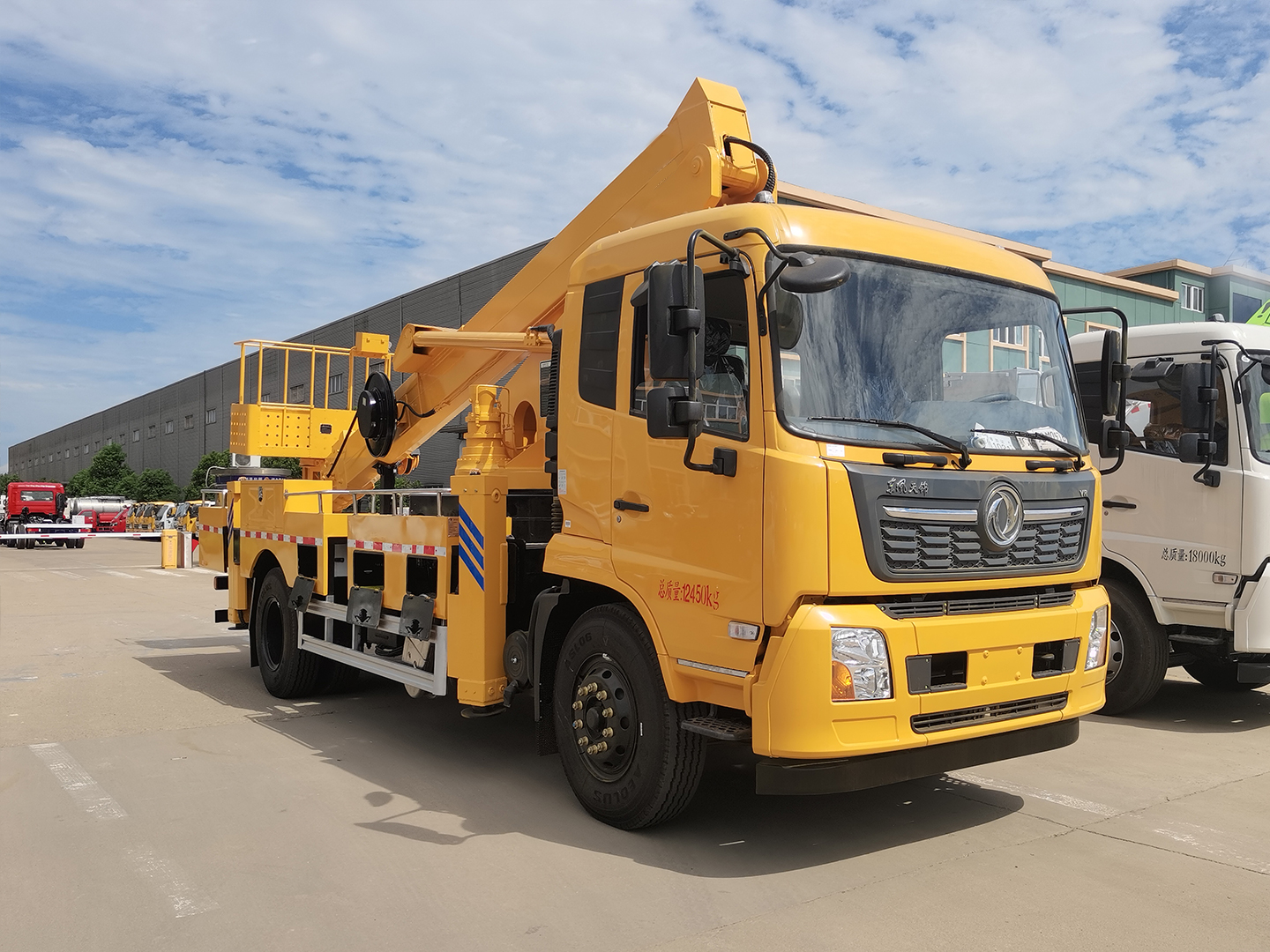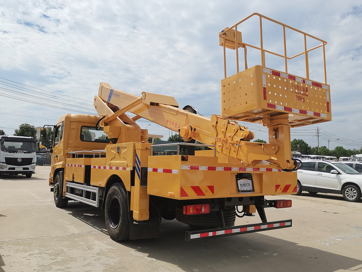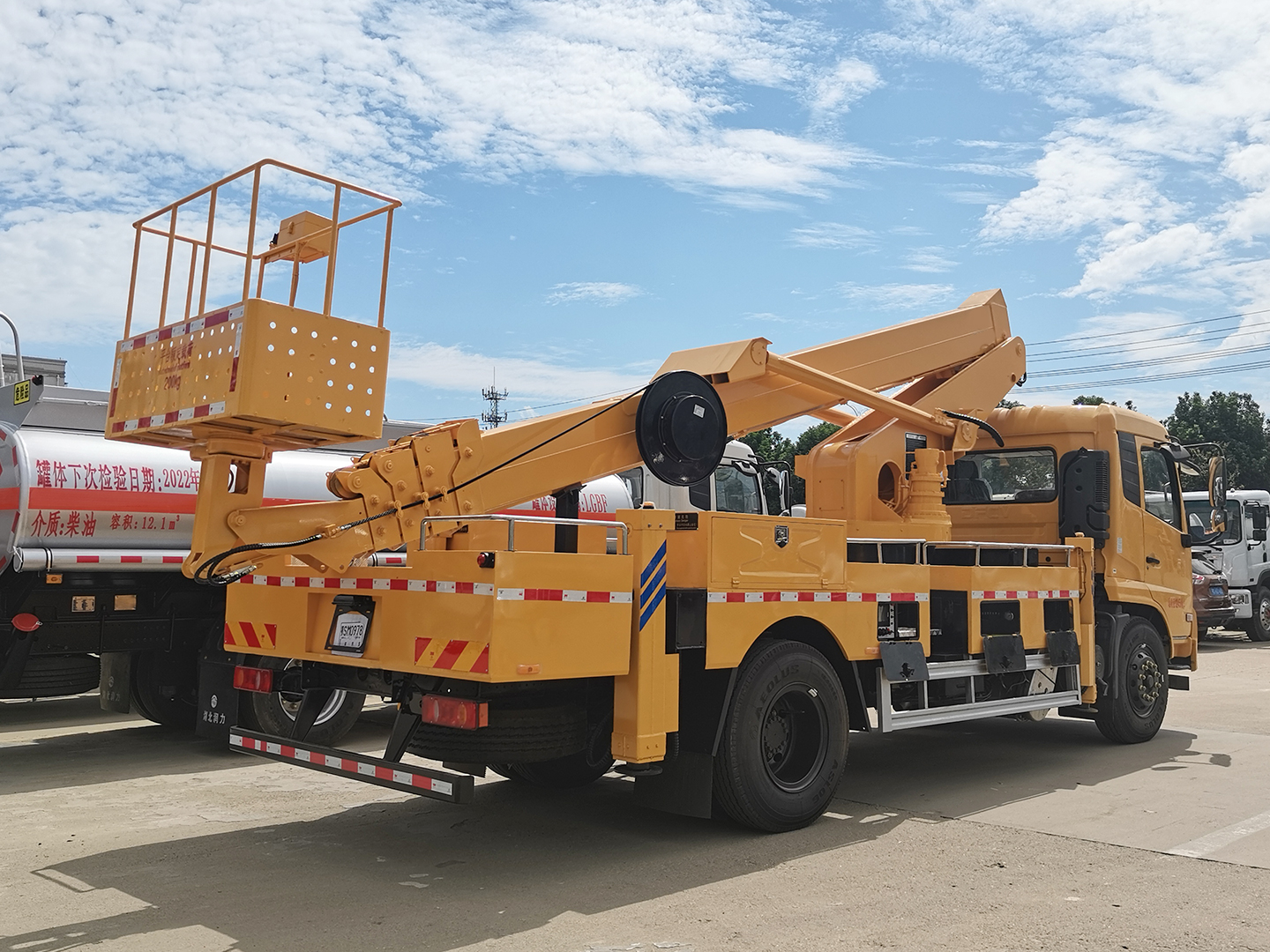 | 整车说明: | 随底盘选装高度不同的驾驶室;选装前雾灯;选装驾驶室顶部装饰灯;选装驾驶室前面罩;选装前保险杠及前部灯具,选装后视镜;选装驾驶室轮罩;驾驶室前脸扰流罩为选装件;驾驶室卧铺侧窗选装装饰板.选装后背式排气管.选装作业臂样式,选装吊篮样式.该车用途为抢修电力、通讯、路灯等高空作业.主要装置为升降平台,作业臂.整车长前悬/后悬/轴距/后伸(mm)对应关系为:8900/1400(1430)/2150(2120)/4700/650,9300/1400(1430)/2150(2120,3050)/4700/1050(150,120),9700/1400(1430)/2150(2120,3050)/4700/1450(550,520).侧/后防护材料为Q235B,侧、后防护与车架焊接连接.后部防护装置断面尺寸(宽×高)50×120(mm),后部防护离地高度:490mm.ABS型号/生产厂家:3631010-C2000/东科克诺尔商用车制动系统(十堰)有限公司,ABS 8/东科克诺尔商用车制动系统(十堰)有限公司,4460046450/威伯科汽车控制系统(中国)有限公司. | ||