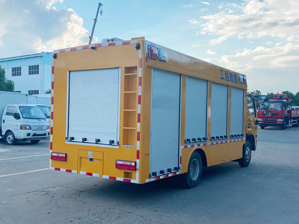 | 整车说明: | 厢体内专用装置是发电机机组,远距离输电装置,电焊机以及应急抢险抢修时必备的光源,气源,电源设备,排涝等工具;侧面防护及后面防护装置采用Q235碳钢,裙边结构构成,后防护断面尺寸(mm):100×45,离地高度:390mm;ABS系统型号: ABS/ASR-24V-4S/4M,ABS系统生产厂家: 襄阳东风隆诚机械有限责任公司.选装驾驶室 | ||