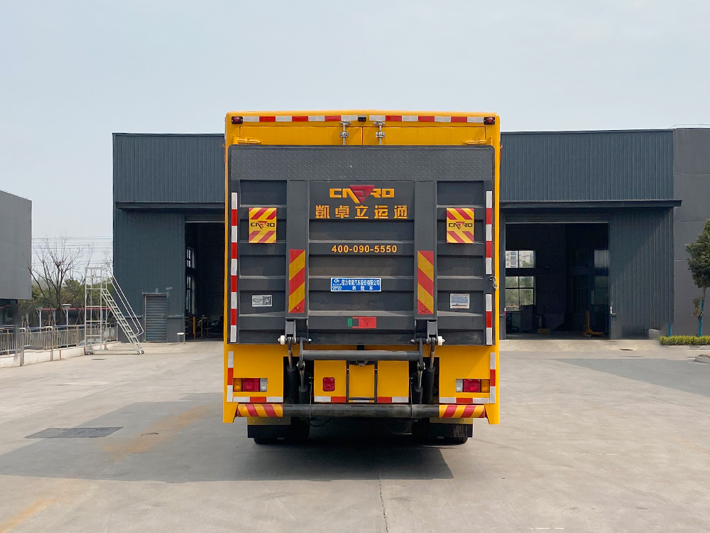 | 整车说明: | 该车专用装置:装有静音车厢,发电机组,电缆卷盘,控制系统等;用于应急抢险,并具备移动电源功能,货架,用于装备器材和救援等专用设备;车厢顶部封闭且不可开启;整车长/轴距/后悬对应关系为(mm):9835/5550/2950,9535/5550/2650,8485/4500/2650,8185/4500/2350,7585/3900/2350,7285/3900/2050;侧防护由车身结构代替,后防护材质为Q235A碳钢,采用焊接加螺栓连接,断面尺寸为φ120mm,防护下边缘离地高500mm;尾板、上下坡道收起状态的水平长度(mm):295,尾板质量为540kg;选装限速装置,限速89km/h;ABS及控制器型号为:APG3550500H1,生产厂家为:浙江亚太机电股份有限公司;ABS控制器型号:ABS8.8 ECU 24V,生产厂家为:东科克诺尔商用车制动系统(十堰)有限公司. | ||