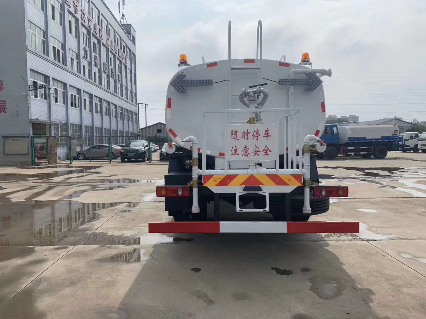 | 整车说明: | 1.该车主要装置为罐体,洒水泵,主要用于洒水;2.罐体有效容积:11.40立方米,罐体外形尺寸(长×长轴×短轴)关系为(mm): 5200×2300×1380;整车长度/前悬/轴距/后悬的对应关系为(mm):8660/1400/4700/2560,8660/1430/4700/2530,8660/1430/4500/2730,8360/1430/4200/2730,8660/1430/5000/2230,8660/1430/5300/1930,3、防护材料:Q235A碳钢,连接方式:左右侧面与后下部防护匀采用螺栓连接,后部防护断面尺寸(mm):120×40,,后部防护离地高度(mm):490.4、ABS型号/生产厂家:3631010-C2000/东科克诺尔商用车制动系统(十堰)有限公司,ABS 8/东科克诺尔商用车制动系统(十堰)有限公司, 4460046450/威伯科汽车控制系统(中国)有限公司.随底盘选装驾驶室。 | ||