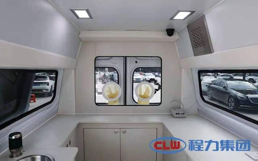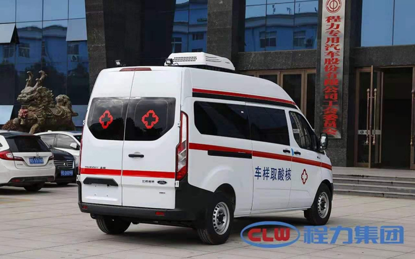核酸检测采样车,采用江铃福特推出的福特新全顺底盘改装。整车参考 PCR 检测实验室及移动实验室等相关行业标准,集成正压防护、温度调节、对讲、样品传递、车内消毒等功能,可迅速部署于户外,为群体核酸咽拭子采样、样品登记及样品整理提供有力支撑;在整个作业过程中确保医务工作人员与受检人员无直接接触,最大限度的保障了一线医务工作人员的作业安全,为新型冠状病毒核酸样本采集及样品整理提供了防护屏障及舒适的工作环境。