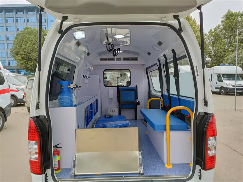 1、灭火器1个 2、输液滑轨1个及挂钩2个 3、尾部黄色上车扶手 4、污物桶 1 个 |