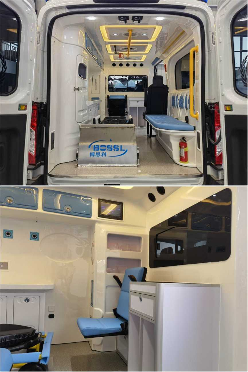 医疗舱右侧正向安装独立靠背座椅1个医疗舱右侧安装二人长条软包座椅带二点式安全带,隔断后部反向折叠靠背软座椅1个 |