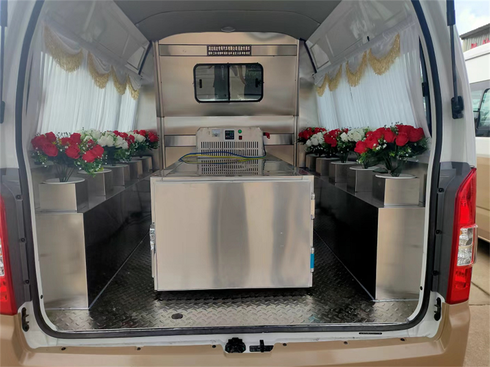 1、采用304D不锈钢加厚材料制作中隔墙(带可滑玻璃窗),方便随时观察后仓 2、有不锈钢工具箱,可放置随车用品 3、前后包铺304D不锈钢平面底板 4、选装304D不锈钢常温尸棺及担架一副304D车载制冷棺 5、可根据不同需求进行改装 |