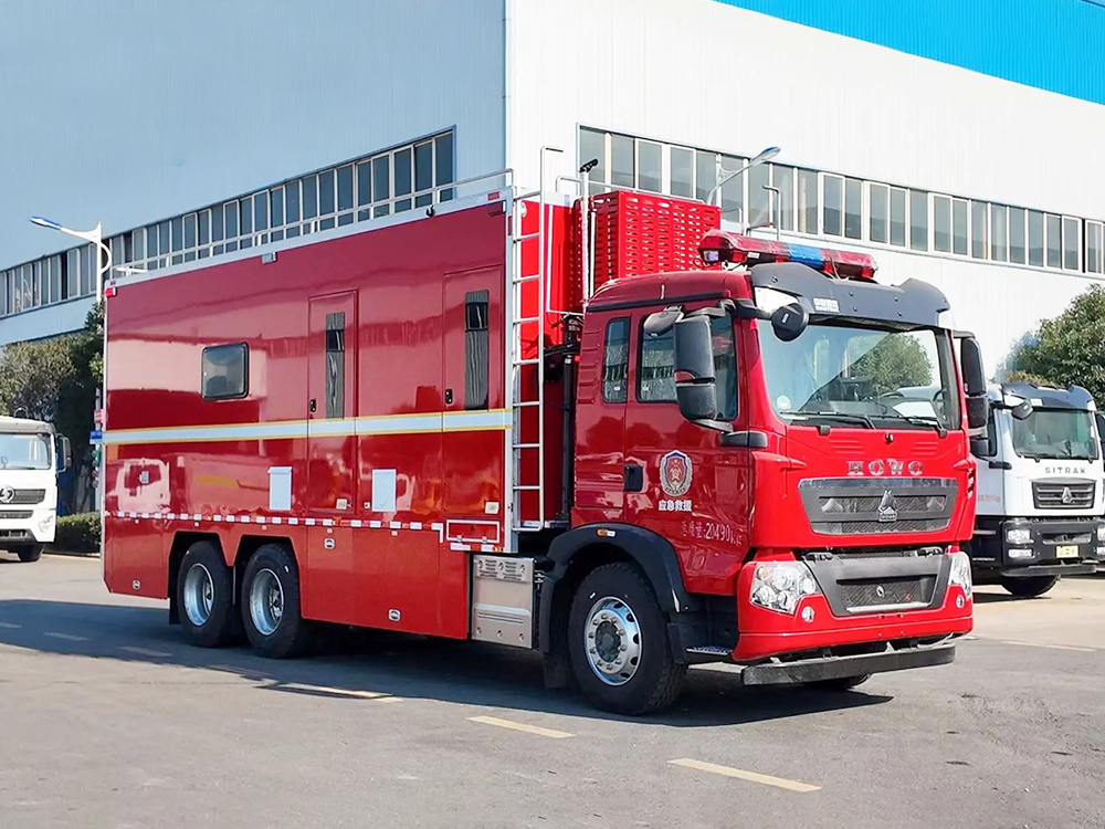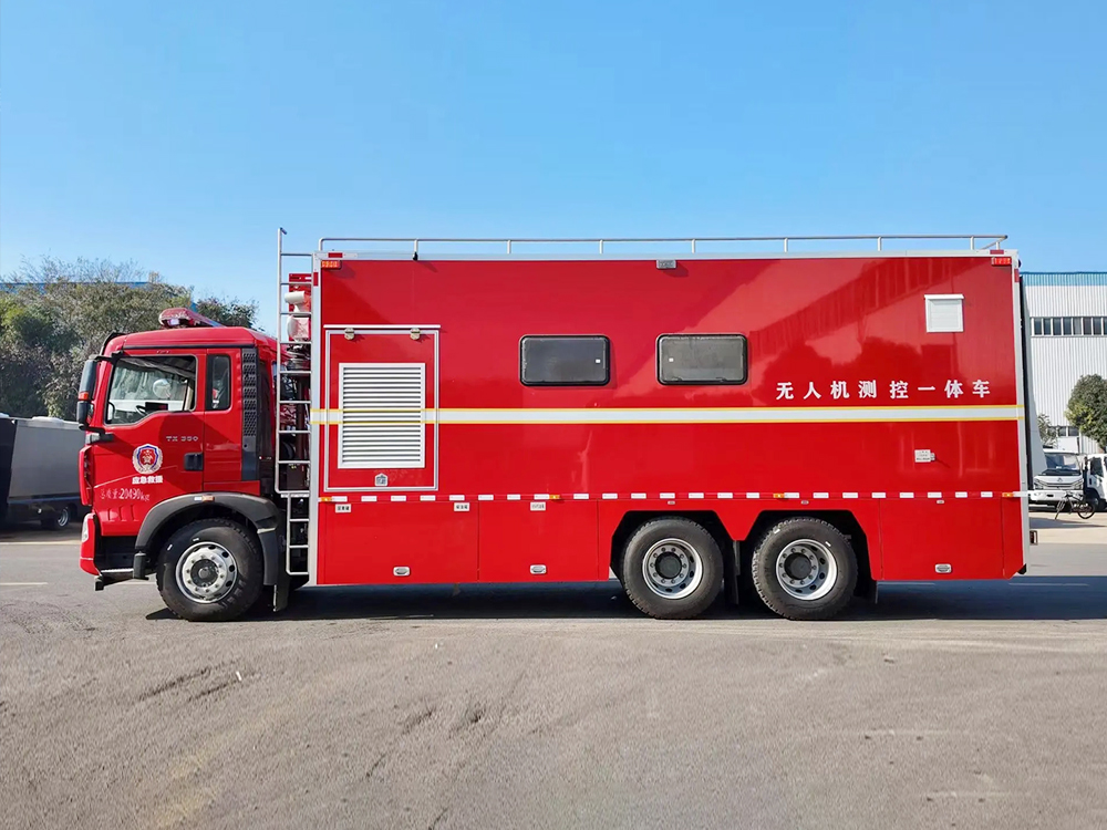 | 整车说明: | 该车主要专用装置为:无人直升机,车载云台摄像机,液晶电视,主要用于现场指挥.侧面防护为裙板结构,后部防护装置材质为Q235B碳钢,连接方式:焊接连接,断面尺寸(mm):120×60,离地高度(mm):480.选装限速装置时,最高车速(km/h)为80或89.ABS系统控制器生产企业/型号为威伯科(上海)管理有限公司/4460046300,选装EBS,EBS系统控制器生产企业/型号为威伯科(上海)管理有限公司/EBS3.整车长/前悬/轴距/后悬对应关系(mm):9700/1430(1500)/4600+1350/2320(2250),9600/1430(1500)/4600+1350/2220(2150),9400/1430(1500)/4275+1400/2295(2225),9300/1430(1500)/4275+1400/2195(2125),9400/1430(1500)/4300+1350/2320(2250),9300/1430(1500)/4300+1350/2220(2150).该车配备液压尾板,液压尾板质量为450kg,液压尾板收起时水平长度为200mm.仅选用钢板弹簧悬架的底盘.仅选用295/80R22.5,12R22.5,12.00R20 16PR,11.00R20型号轮胎.选装转台天线,选装静中通卫星天线,选装倒伏升降云台摄像机. | ||