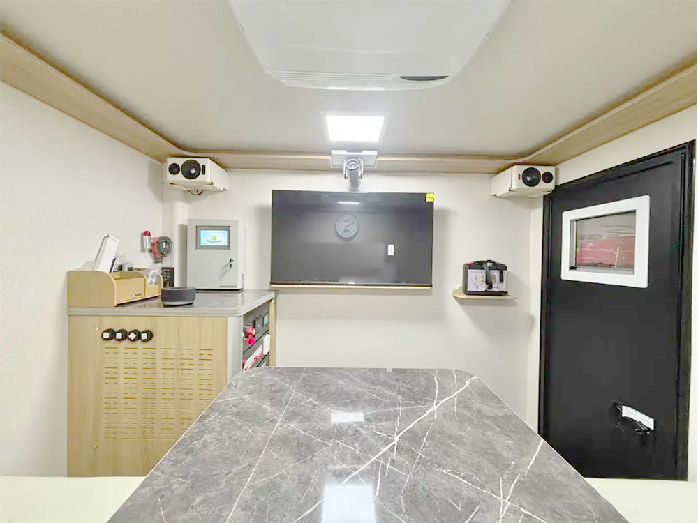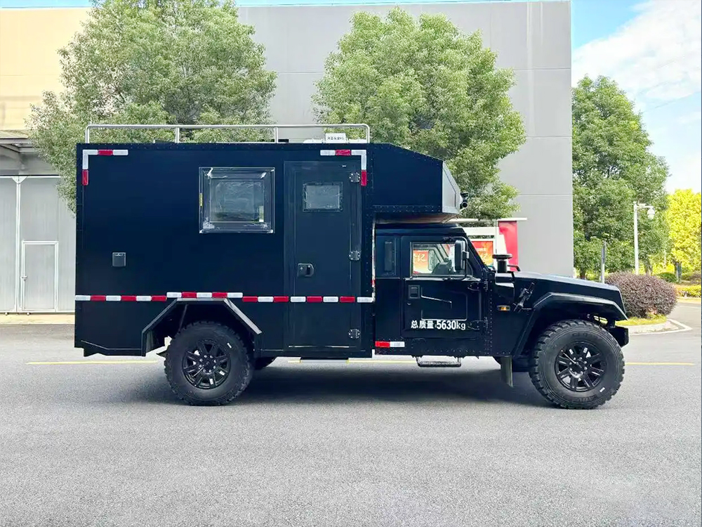 猛士国六越野式指挥车整个内饰采用的是黑色布局,大气稳重充满气场。搭配四位方向盘,凸显了新车的运动属性。定制的是大尺寸中控屏密集覆盖物理按键。科技感与越野风相结合。搭载4.0T柴油发动机,采用的是防脱轮毂,离地间隙非常高,新车的门把手采用的是黑色装饰。箱体内部加装了指挥机器,会议桌灯设施,根据要求进行定制。箱体材料便捷防刮耐磨。原车版型量身定制,使用寿命更长。