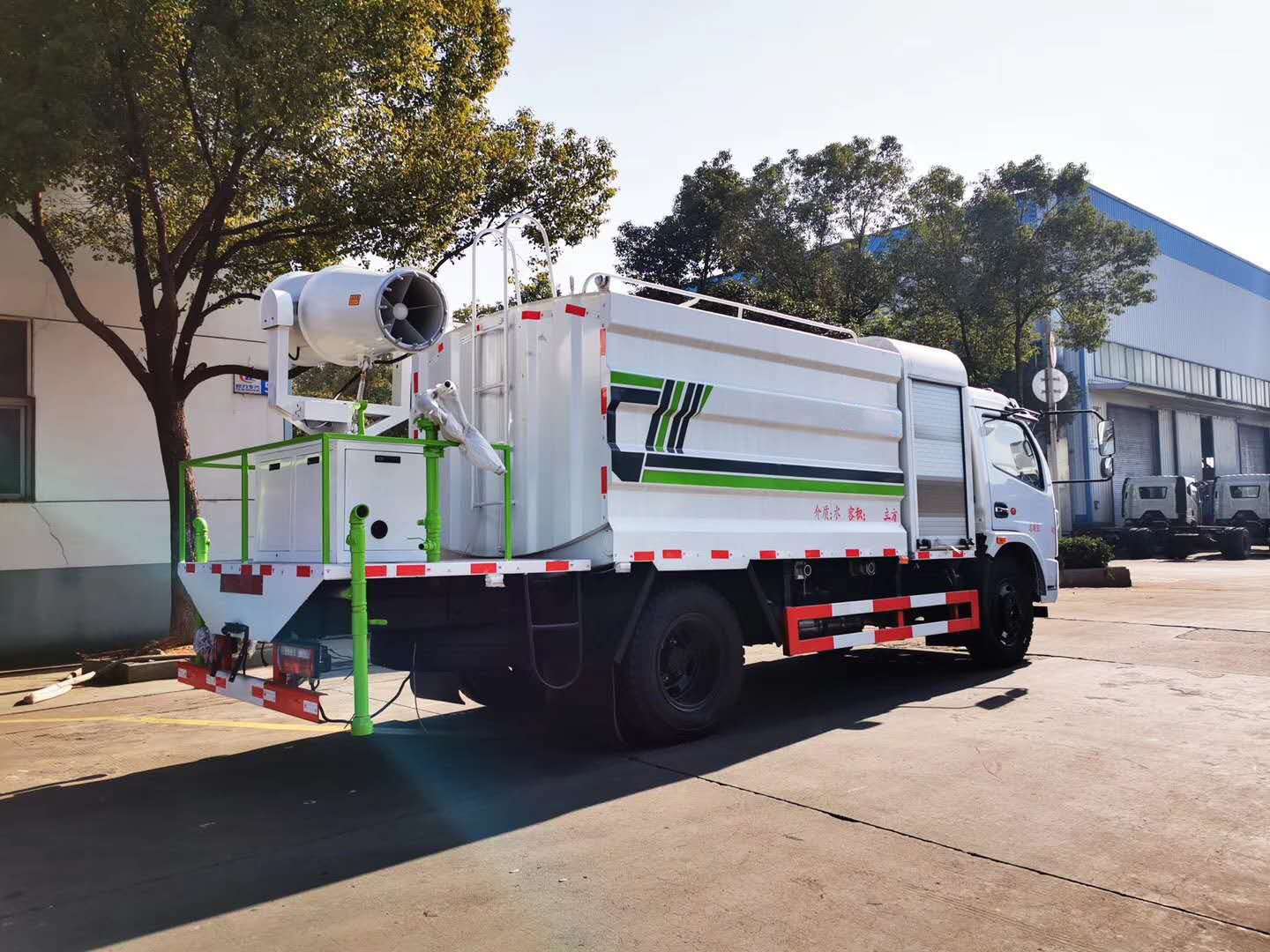 | 整车说明: | 随底盘选装前面罩,前保险杠,前组合灯具,前雾灯。侧防护采用Q235,螺栓连接。后防护采用Q235,焊接连接。后防护截面高度尺寸120mm,截面宽度尺寸50mm,下边缘离地高度375mm。采用3800轴距底盘.ABS型号/厂家:ABS型号:ABS/ASR-24V-4S/4M,厂家:襄阳东风隆诚机械有限责任公司。该车用途为抑尘降霾,主要装置为水罐及喷雾装置。选装后平台样式,外观样式,左右出水口及附件位置。 | ||