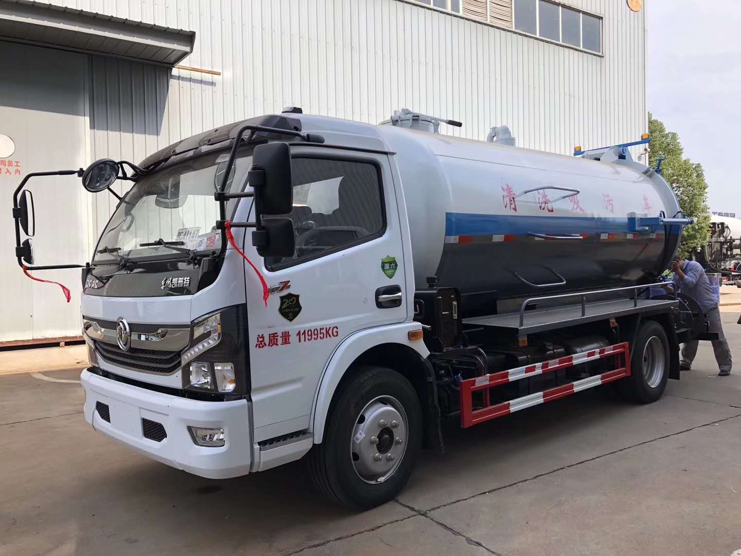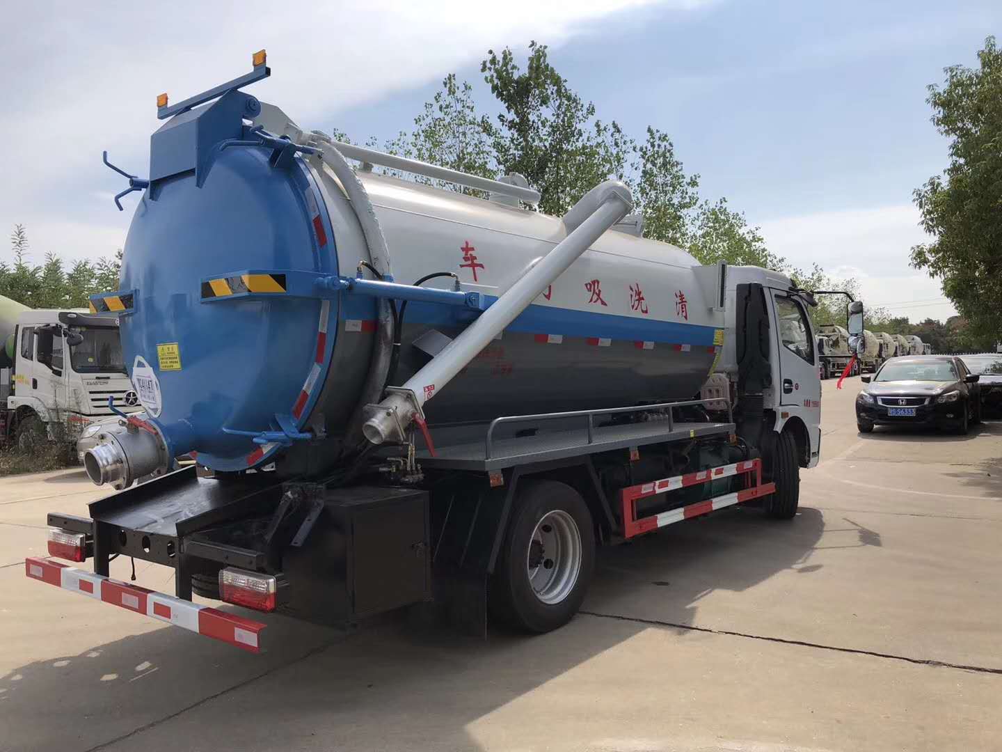 | 整车说明: | 该车主要用于城市各种输送管道(堵塞物)疏通工作;主要装置为罐体.罐体外形尺寸(长(含封头)×直径)(mm):4900×1600(其中罐体前部2100mm为清水罐),污水罐罐体有效容积5.1立方米,运输介质:液态污物;清水罐罐体有效容积3.7立方米,运输介质:水.清洗和吸污功能不同时使用,两罐不能同时装载.车辆长/前悬/后悬的对应关系为:7380/1130/2450,7380/1180/2400,6900/1130/1970,6900/1180/1920.仅采用3800mm轴距.侧、后防护装置材料材质均为Q235;连接方式:左右侧面及后下部防护均采用焊接连接,后部防护装置断面尺寸(宽×高)50×180(mm),后部防护离地高度:400mm.随底盘选装驾驶室,选装罐体后部卷盘.ABS型号/厂家:ABS型号:ABS/ASR-24V-4S/4M,厂家:襄阳东风隆诚机械有限责任公司. | ||