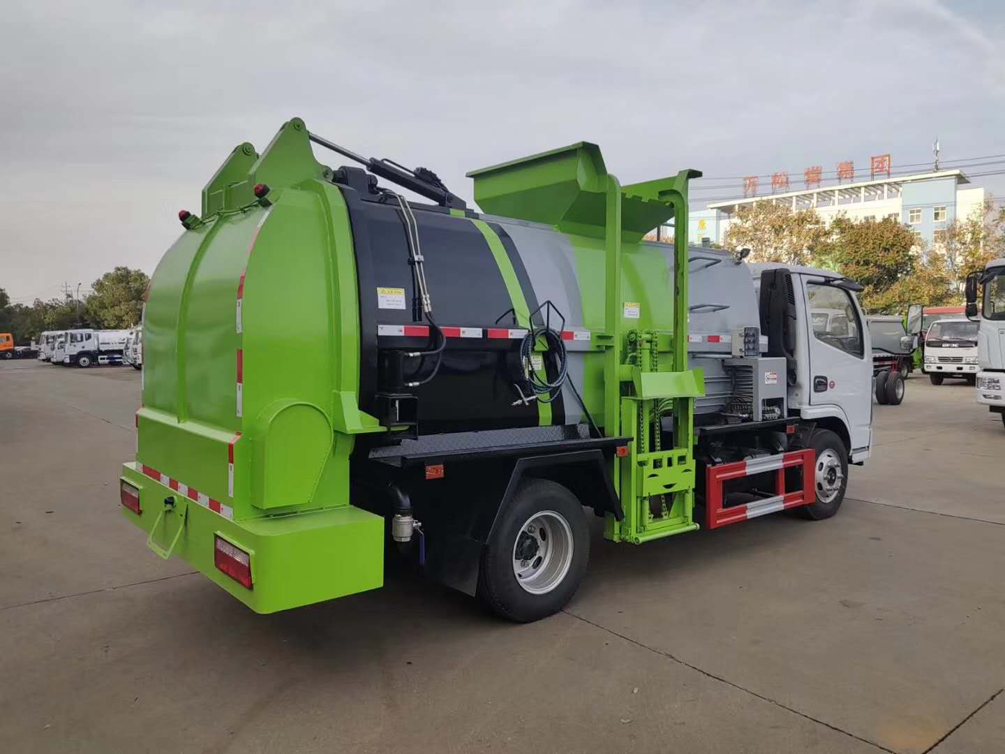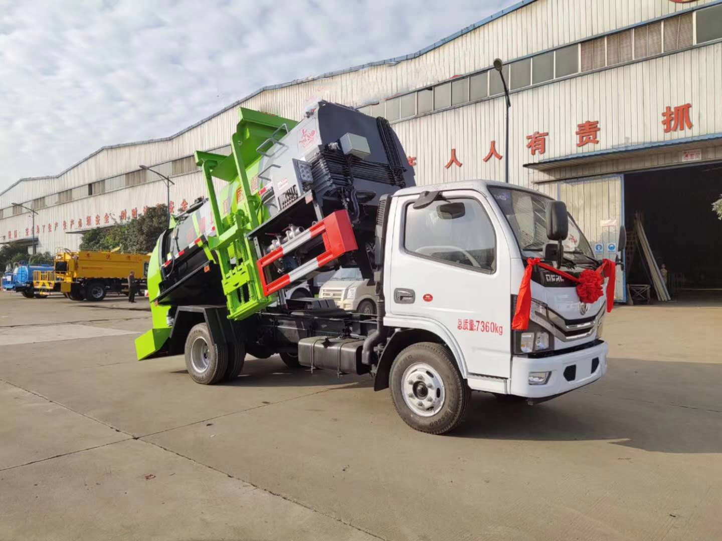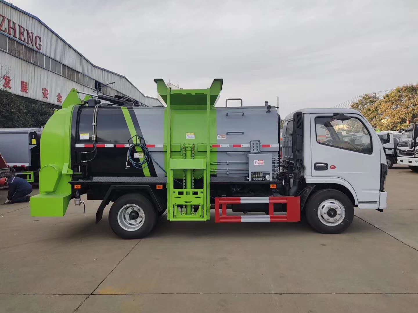 | 整车说明: | 随底盘选装驾驶室。该车辆装有侧装垃圾桶升降装置,封闭式垃圾罐等装置,主要作用于餐厨垃圾收集,转运及卸料作业。整车长/轴距/前悬/后悬对应关系(mm)为:5995/3308/1632;5830/2950/1825;5505/2700/1750;防护材料:Q235A碳钢,连接方式:左右侧面与副梁采用焊接连接,后防护装置由专用装置代替,离地最小高度为360mm。ABS型号/厂家:ABS/ASR-12V-4S/4M/襄阳东风隆诚机械有限责任公司。 | ||