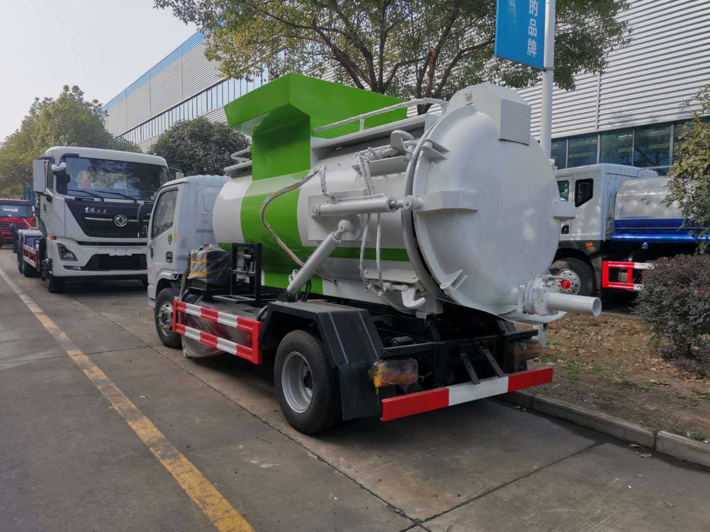 | 整车说明: | 1、仅选用3308mm轴距底盘改装。2、该车可选装内部推板、加热装置,不影响整车外观,但会引起整车重量变化,该车可选装A:内部推板装置B:内部加热装置C:真空吸污装置,当无选装装置时:整备质量/额定载质量对应关系为(kg):4370/2860;当选装A、B、C装置中任意一项配置时,整备质量/额定载质量对应关系为(kg):4800/2430;当选装A、B、C装置中任意两项配置组合时,整备质量/额定载质量对应关系为(kg):5100/2130;当A、B、C装置全部选装时,整备质量/额定载质量对应关系为(kg):5250/1980。3、防护材料:Q235B碳钢,连接方式:左右侧面及后下部防护均采用焊接连接,后下部防护断面尺寸(mm):120×50,后下部防护离地高度(mm):380。4、ABS型号/厂家:ABS/ASR-12V-4S/4M/襄阳东风隆诚机械有限责任公司。5、专用装置:侧装垃圾桶提升装置,主要用于餐厨垃圾收集及转运。6、随底盘选装驾驶室,选装底盘附件安装位置。该车可选装爬梯,可选装带真空吸污装置上装外观,提升机外观,视窗后置。 | ||
