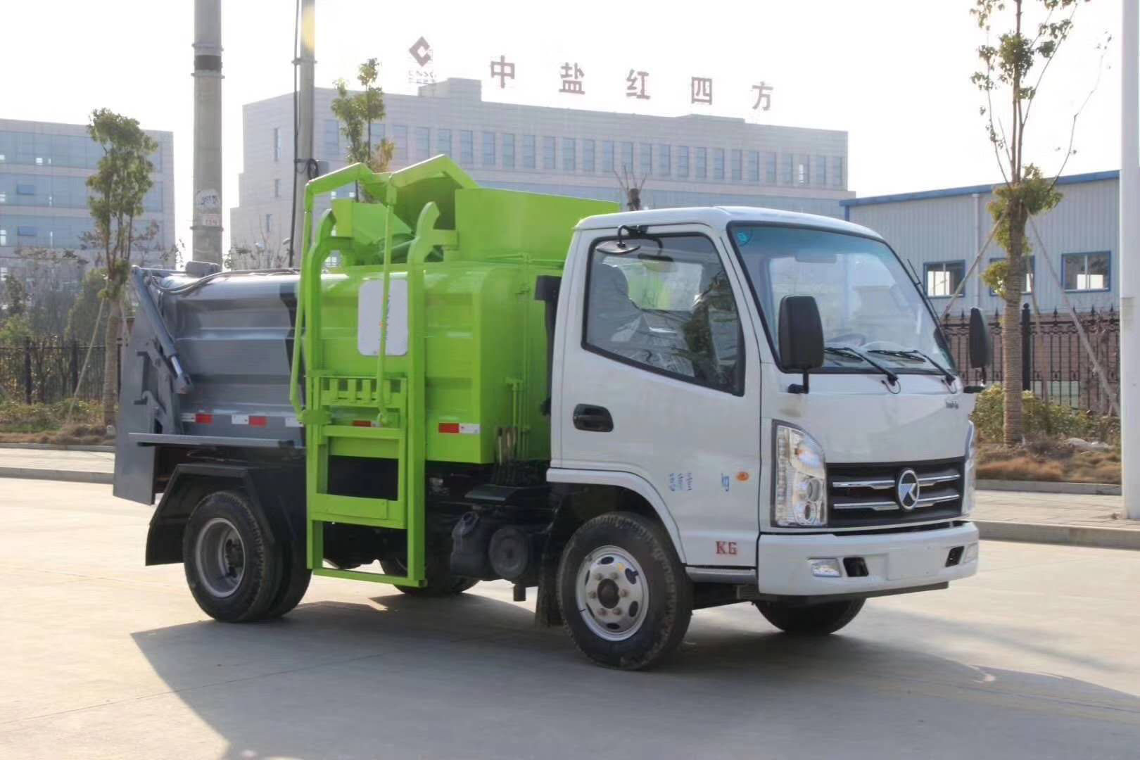 | 整车说明: | 1、该车仅选用2800mm轴距底盘。2、可选装内部卸料装置,不影响整车外观,但会引起整车重量变化,选装相关配置时整备质量/额定载质量对应关系为(kg):无推板装置时:3400/965,3650/715。选装推板装置时:3850/515。3、防护材料:Q235B碳钢,连接方式:左侧面防护采用焊接连接,右侧面防护及后下部防护由专用装置代替,后部专用装置离地高度(mm):480。4、ABS型号:CM4XL-4S/4M,ABS生产企业:广州瑞立科密汽车电子股份有限公司。5、专用装置:侧装垃圾桶提升装置,主要用于餐厨垃圾收集及转运。6、随底盘选装驾驶室。 | ||