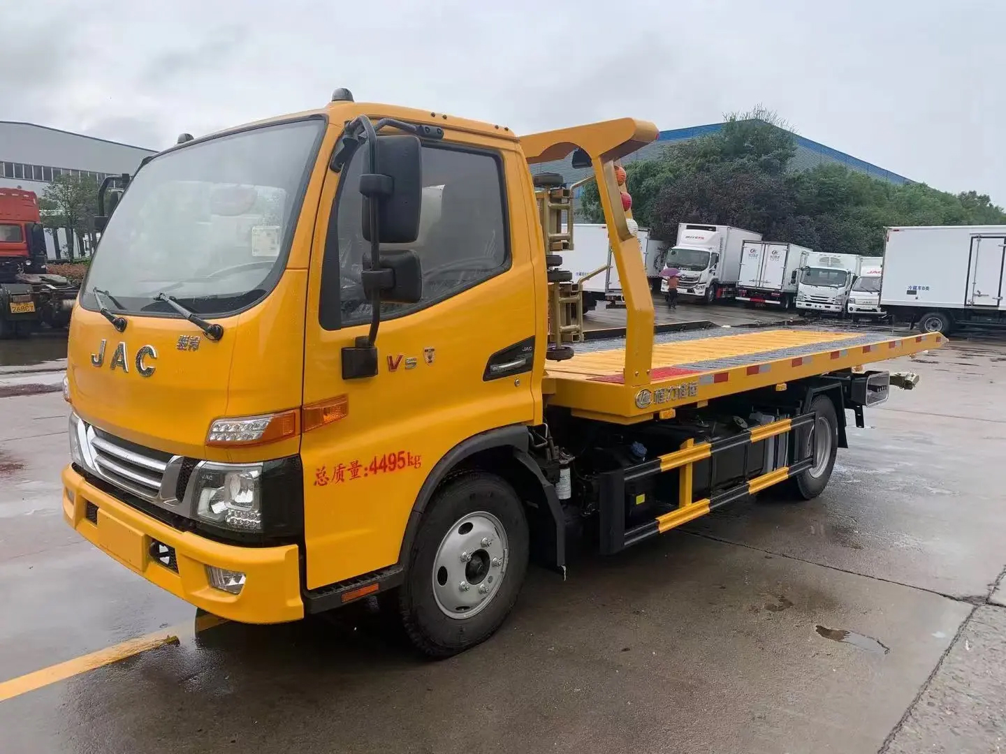 | 整车说明: | 1.整车仅采用3365mm的轴距;2.防护材料:Q235A碳钢,连接方式:左右侧面及后下部防护均采用焊接连接,后部防护断面尺寸(mm):50×100,后部防护离地高度(mm):390;3.ABS 型号/厂家 :VIE ABS-Ⅱ/浙江万安科技股份有限公司;4.专用装置有液压绞盘,钢丝绳,油缸,背载装置等组成,通过绞盘钢丝绳将车辆牵引至平板上进行背载运输,背载质量500kg.主要用于道路故障车辆的清理.4.选装全落地装置,选装后部结构. | ||
