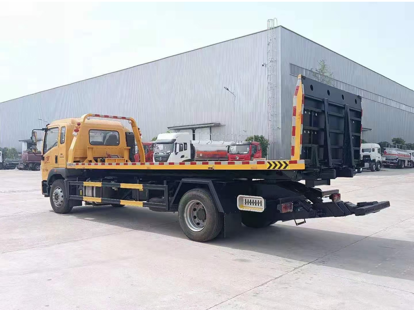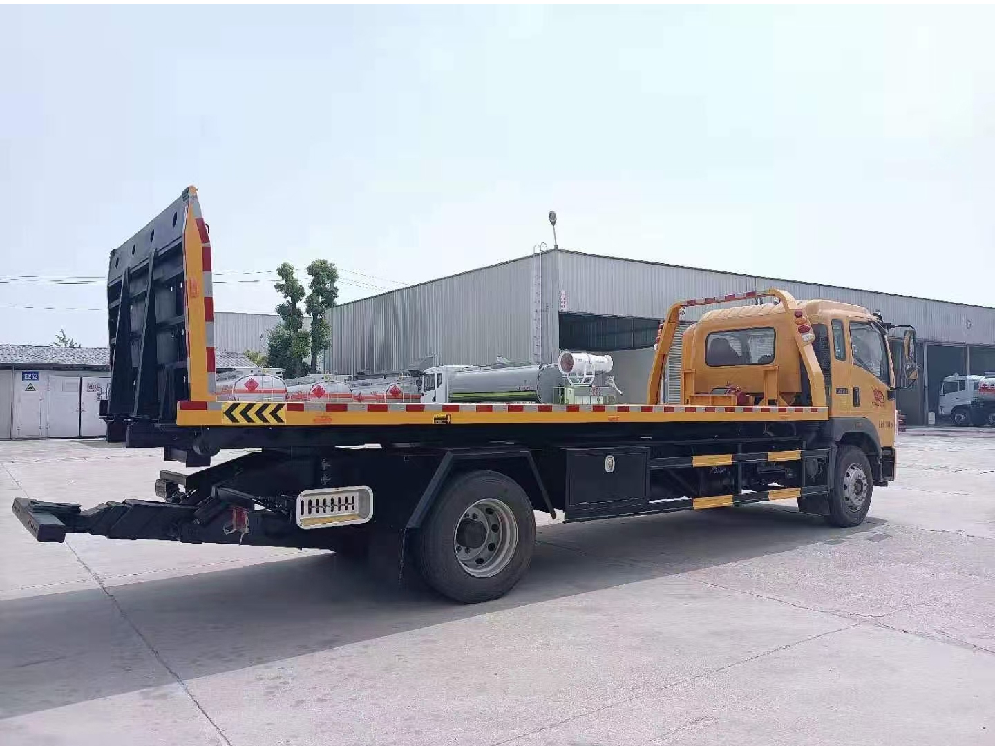 | 整车说明: | 1、该车用途为道路故障车辆、城市违章车辆及抢险救援等;主要专用装置为平板,绞盘,油缸.驾驶室准乘人数2人时,整备质量(kg)/托举质量(kg)对应关系为:8900/8970,9860/8010,11260/6610;驾驶室准乘人数3人时,整备质量(kg)/托举质量(kg)对应关系为:8900/8905,9860/7945,11260/6545.2、侧防护材料为Q235,侧防护螺栓联接和焊接,后防护由专用装置代替,下边缘离地高330mm.3、仅采用4700mm,5200mm,5600mm轴距底盘,ABS系统型号为XH-KQ4S4M-E01,生产企业为广州市西合汽车电子装备有限公司;型号为CM4XL-4S/4M,生产企业为广州瑞立科密汽车电子股份有限公司.选装驾驶室样式,选装后部结构样式。 | ||