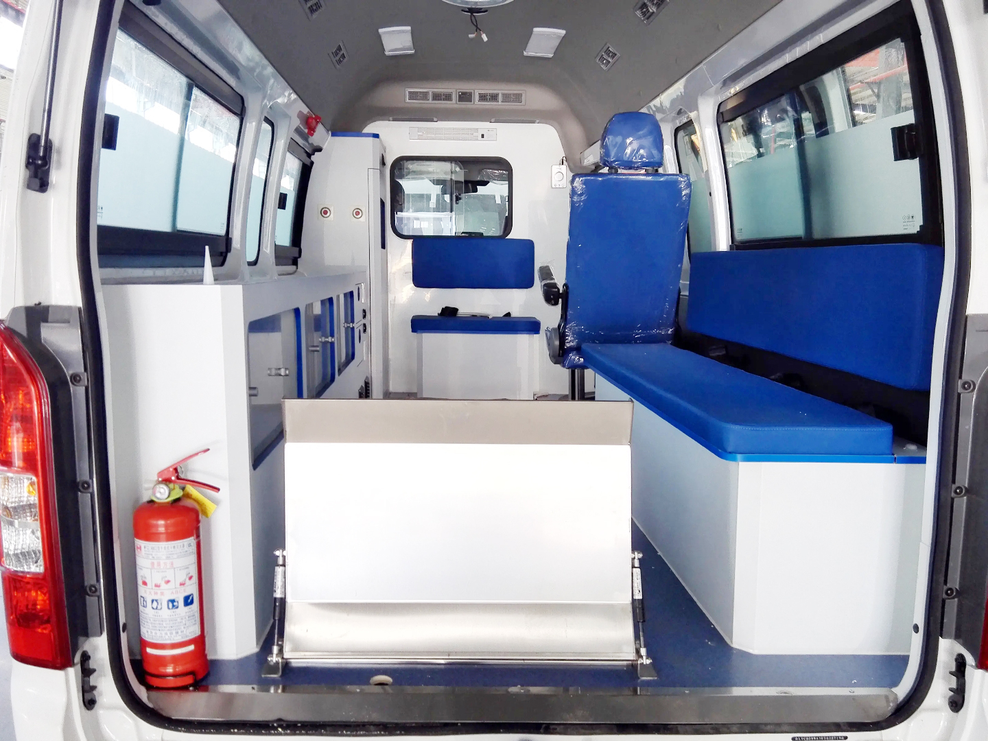 | 整车说明: | 1.选装天窗、粘结玻璃和推拉窗、铝轮、轮罩、倒车雷达、不同颜色钢轮、后刮水器、后洗涤器、后照地镜、后除霜、另一种前保险杠和前格栅.2.配备专用装置:警示灯警报系统,铝合金担架,医疗器械柜.对应整备质量为2390kg;3.选装磁吸式爆闪警灯、长条双排LED爆闪灯、急救外场照明灯等对应整备质量为2510kg;4、选装医疗舱前后对讲机、专用座椅、担架底仓及上车担架(铝合金担架车)、滑动式输液支架、氧气柜、医疗柜,紫外线消毒灯、医疗舱照明灯、全车玻璃贴膜、灭火器、医疗舱暖风机、玻璃钢中隔墙、中隔断滑动推拉窗、救护车专用地板、可侧翻2人长条座椅或2人带箱柜式座椅、医疗舱双向换气扇、污物桶、车内安全扶手、车载12V供电系统、车内电气控制开关、氧气瓶固定支架、改装医疗舱暖风机等,用于运送伤病员.5.ABS控制器型号/生产企业:YF8/武汉元丰汽车电控系统有限公司.所用发动机最大净功率为110kW。 | ||