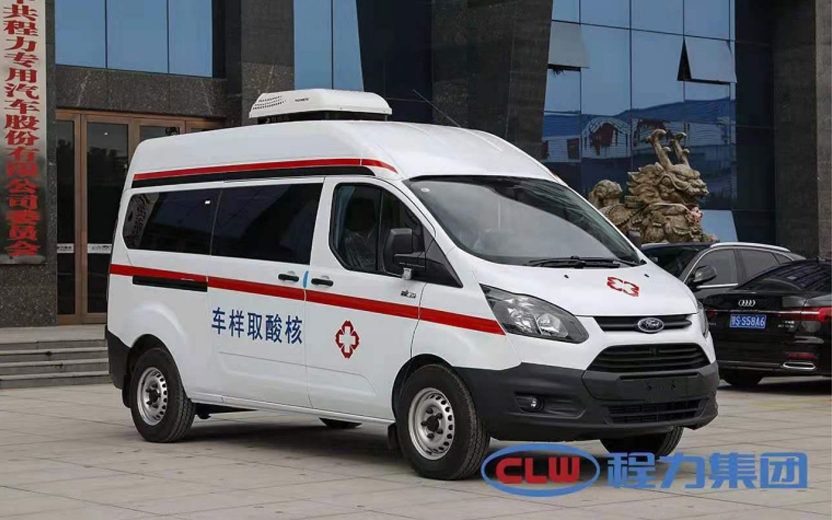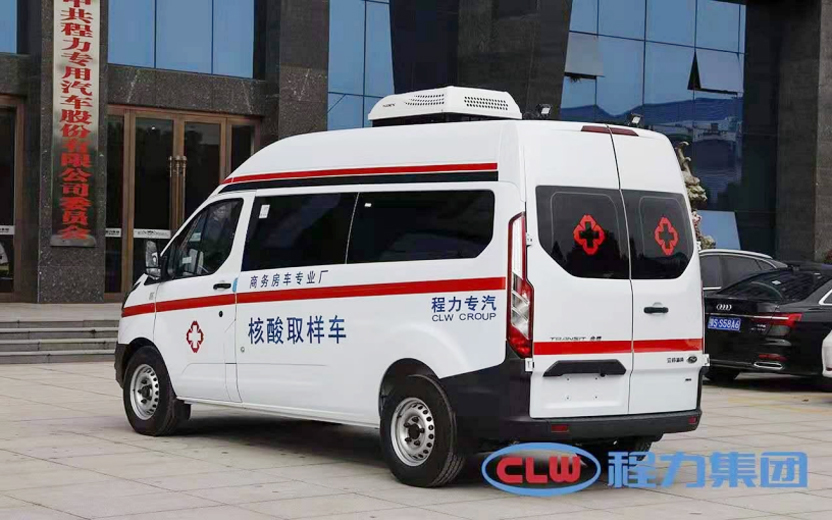 核酸检测采样车,采用江铃福特推出的福特新全顺底盘改装。整车参考 PCR 检测实验室及移动实验室等相关行业标准,集成正压防护、温度调节、对讲、样品传递、车内消毒等功能,可迅速部署于户外,为群体核酸咽拭子采样、样品登记及样品整理提供有力支撑;在整个作业过程中确保医务工作人员与受检人员无直接接触,最大限度的保障了一线医务工作人员的作业安全,为新型冠状病毒核酸样本采集及样品整理提供了防护屏障及舒适的工作环境。