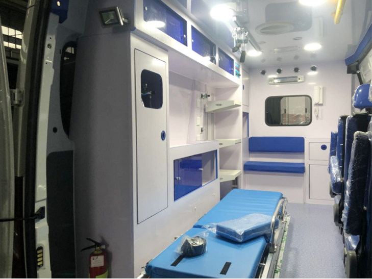 1、医疗舱灭火器 1 个 2、输液滑轨1个及挂钩2个 3、顶部黄色安全扶手 4、污物桶 1 个 |